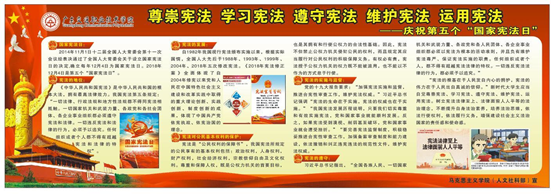 此外,马克思主义学院在南北校区的校园里分别展出了以“尊崇宪法、学习宪法、遵守宪法、维护宪法、运用宪法”为主题的宣传栏,为宪法宣讲教育活动营造良好的氛围。