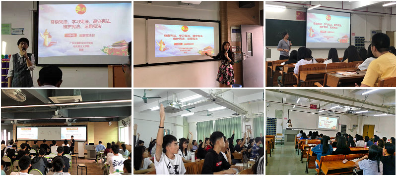 为了弘扬宪法精神,树立宪法权威,依据广东省教育厅“关于在全省教育系统学习宣传和贯彻实施《中华人民共和国宪法》的通知”,以及广东省教育厅下发的“关于开展2018年教育系统国家宪法日主题教育活动的通知”要求,我校马克思主义学院教师于12月3日至7日,面向18级全体学生,在《思想道德修养与法律基础》课堂开展了以“尊崇宪法、学习宪法、遵守宪法、维护宪法、运用宪法”为主题的“国家宪法日”宣讲教育系列活动。
