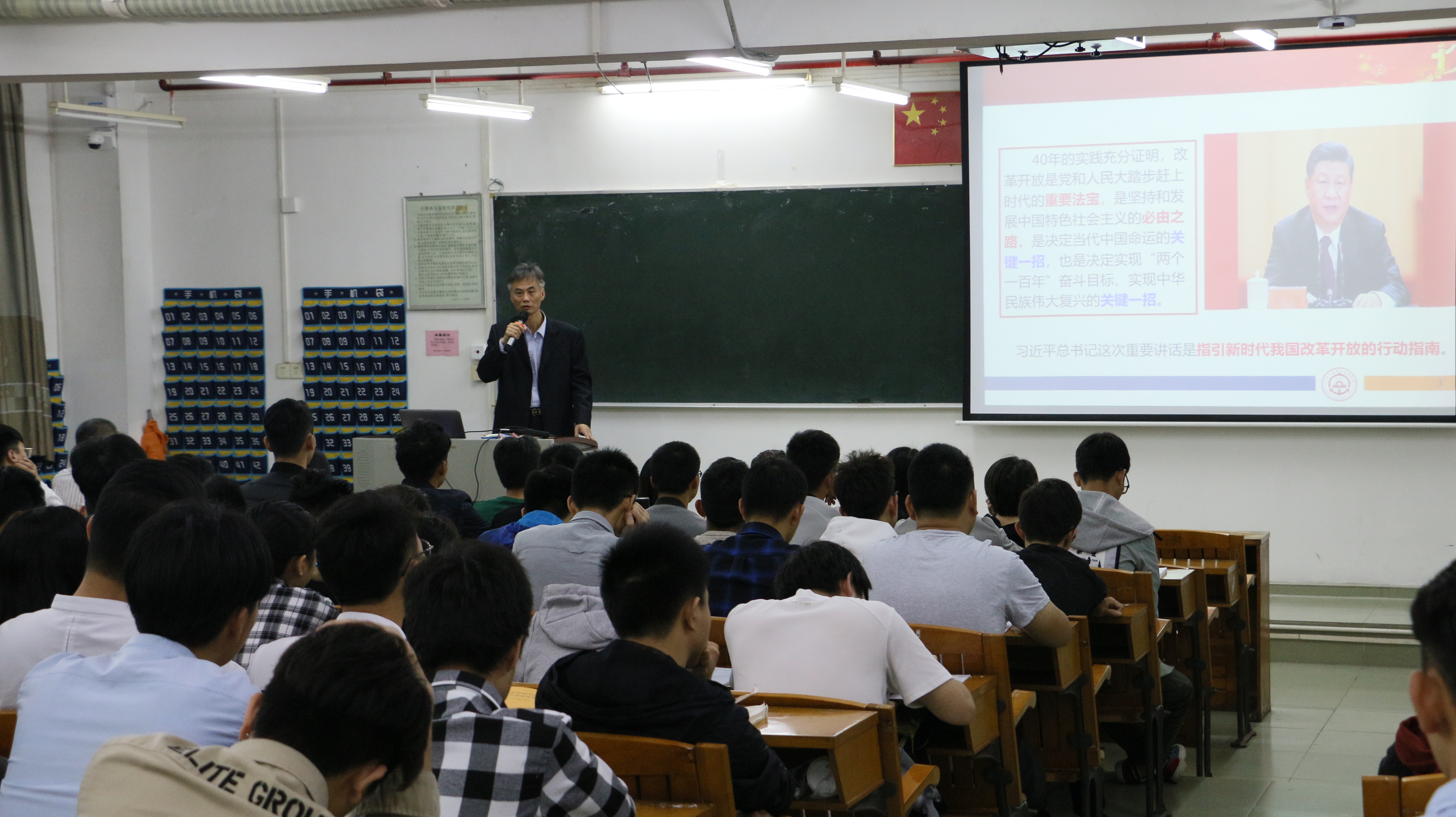 3月14日,学校党委书记朱伟新为17级电气自动化技术、17级工业机器人技术2个专业的同学们专题讲授《毛泽东思想和中国特色社会主义理论体系概论》课程。朱书记的授课专题是《凝神聚力——全面深化改革开放》,主要从“改革开放的时代背景”、“改革开放的基本进程与成效”、“坚定不移地全面深化改革”三个方面展开。朱书记结合自身的生活和工作经历,通过一个个典型、生动的案例重点向同学们讲述了改革开放前后我国在政治、经济、民生、高职教育等方面发生翻天覆地的变化,鲜活易懂地说明了改革开放的时代背景、基本进程、“改革永远在路上”。朱书记的讲课深入浅出,让同学们深刻体会到改革开放是社会主义制度的自我完善,改革是党和人民事业大踏步赶上时代潮流的重要法宝。课后,朱书记还与学生们亲切交流,要求大家铭记昨天改革的不易,珍惜今天改革的成果,把握明天改革的机遇,鼓励大家勤学习、多思考、踏实肯干,积极投入改革大潮,勇做中华民族伟大复兴的“追梦人”。
