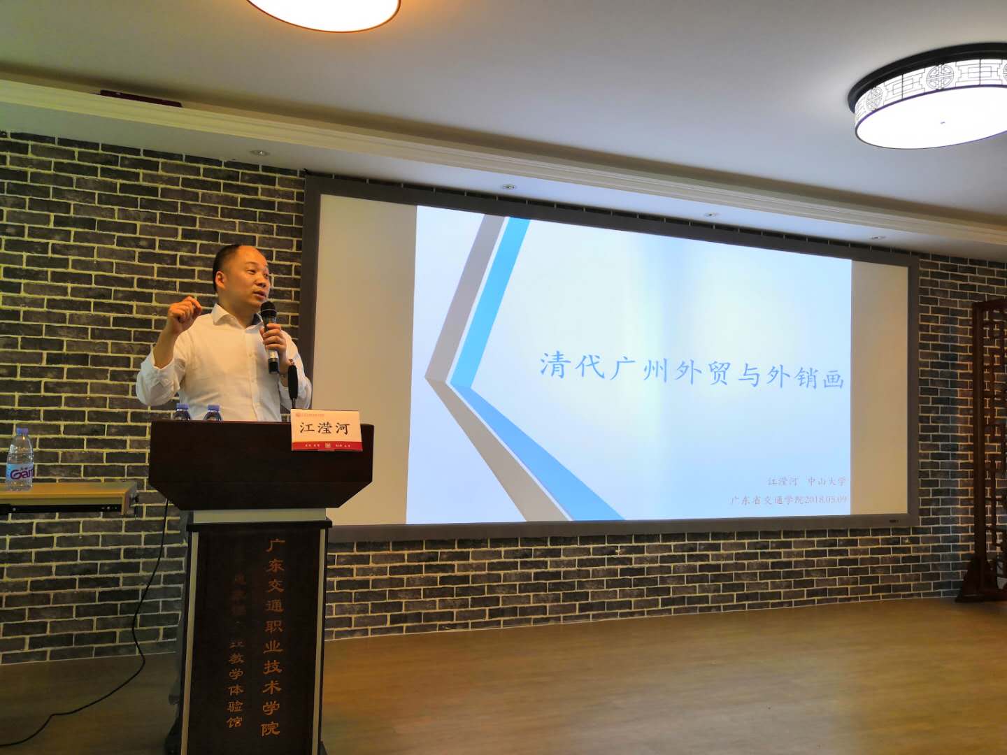 5月9日下午,中山大学历史系江滢河教授莅临天河校区思政课实践教学体验馆,为现场师生带来题为“清代广州外贸与外销画”的精彩讲座。江教授从清代广州对外贸易发展的历史背景入手,通过大量海外收藏的作品分析了广州外销画的艺术风格,讲述了广州外销画背后的生动故事,阐释了广州在中西文化交流中的重要历史地位。