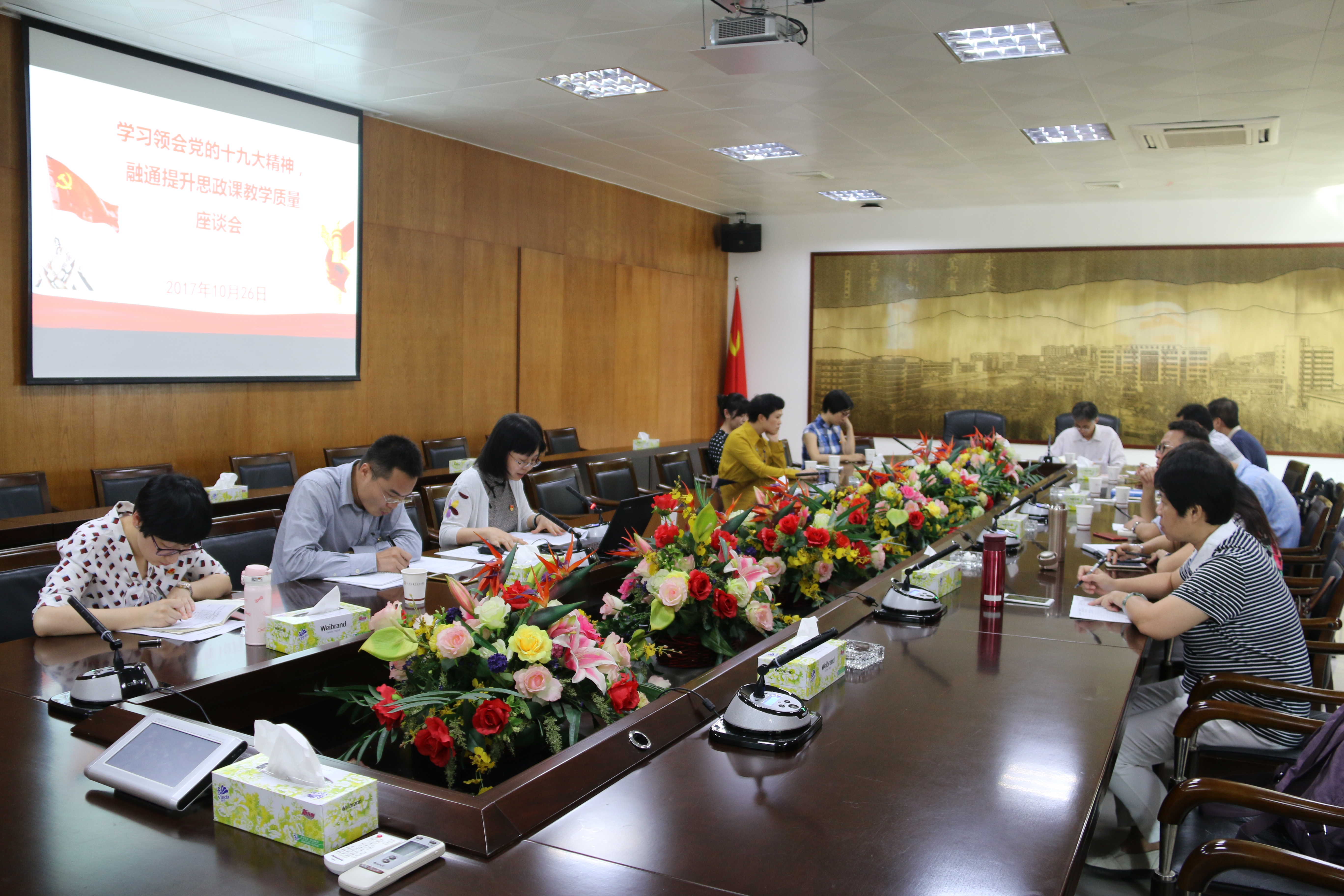 为认真学习贯彻党的十九大精神,将党的十九大精神融入我校思想政治理论课教育教学工作,人文社科部直属党支部于2017年10月26日下午在行政楼4楼会议室召开了专题组织生活会,学校党委书记朱伟新同志应邀出席会议,组织宣传部部长叶兵、人文社科部全体教师参加了会议。