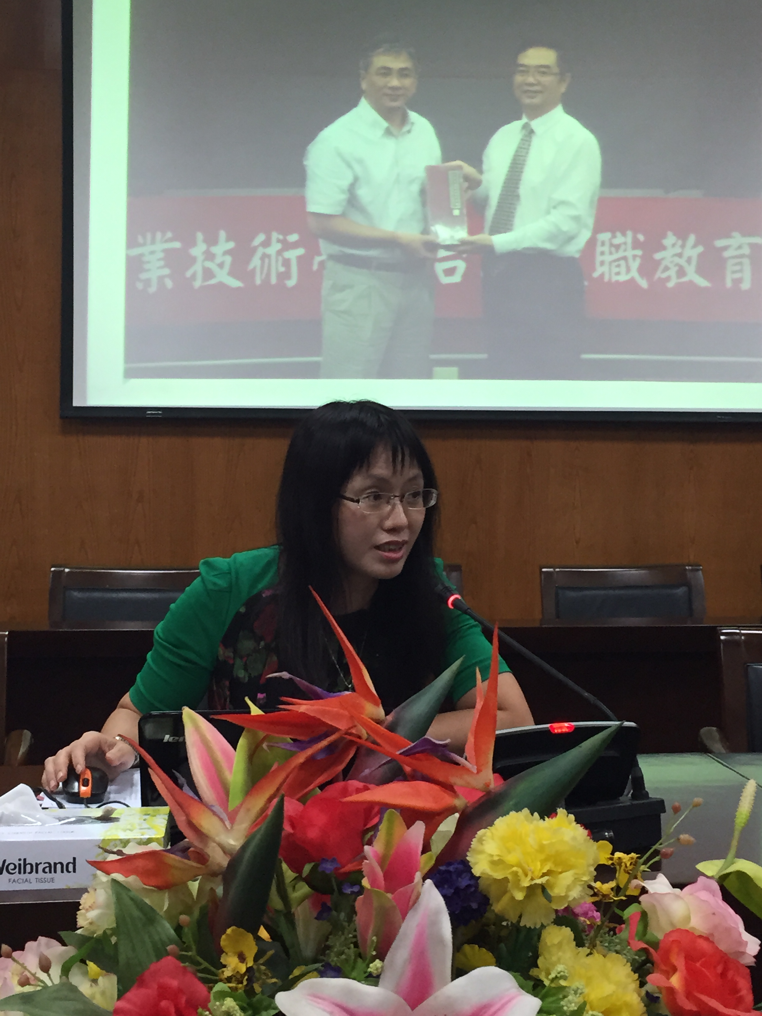 之后,林梵老师作赴台湾培训汇报。林老师介绍了台湾地区朝阳科技大学与义守大学两所高校关于劳作教育、学生发展中心、通识中心、教师的评鉴机制的基本情况。林老师指出,此次培训,她感触最深的就是两所高校老师们的敬业奉献精神;老师们健康优雅的形象;学生的文明有礼、公共场所办公区域的干净整洁。