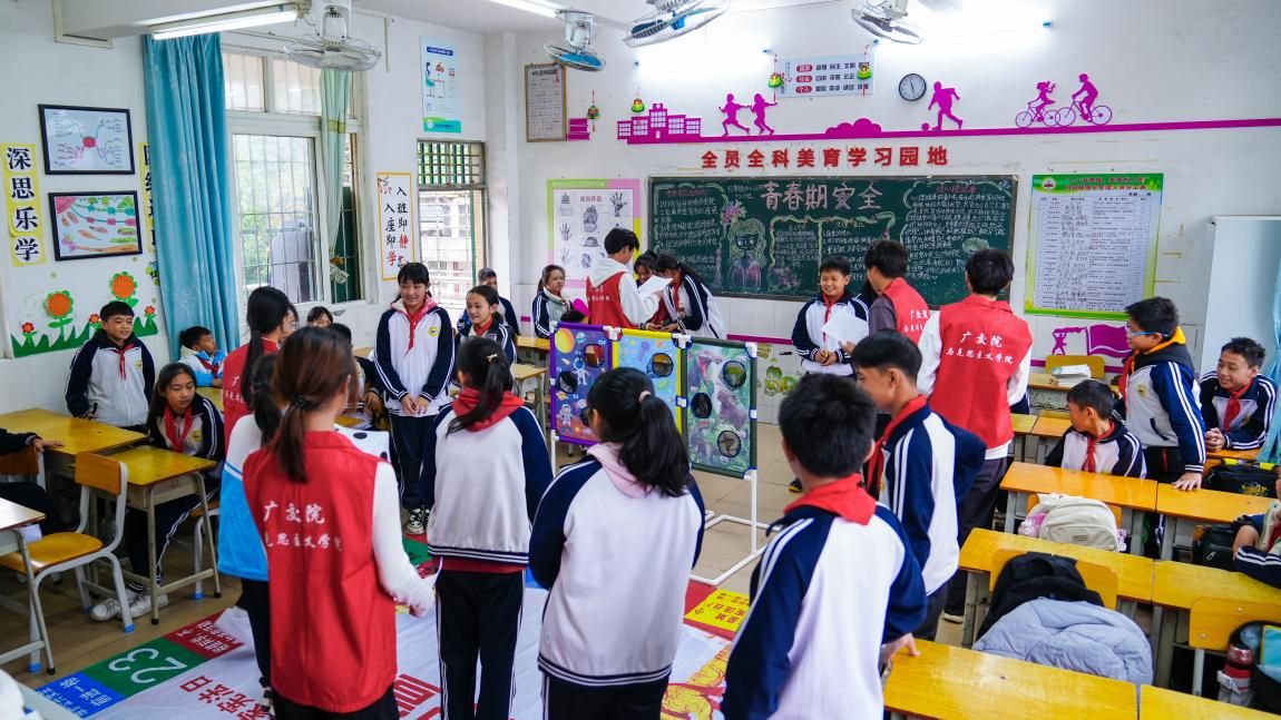 为深入贯彻落实省委、省政府关于推动基础教育深化改革高质量发展的意见,支持粤东粤西粤北地区基础教育工作,清新区教育局与广东交通职业技术学院结对帮扶。12月4日下午,马克思主义学院院长周志平带领思政课法治教育基地师生与团委朱键老师一行12人,走进清远市清新区石潭中心小学举办“宪法在身边,争当护法小卫士”宪法宣传进校园基础教育帮扶活动。