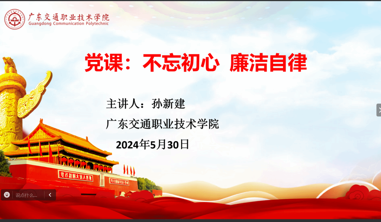 一支部联系领导、马克思主义学院副院长孙新建讲授《不忘初心 廉洁自律》专题党课。孙新建从党的初心的理论溯源、党的初心的践行史以及党带领人民的奋斗史中回顾了党带领人民、紧紧依靠人民、为民族谋复兴、为人民谋幸福的历史进程。孙新建强调,广大党员教师自觉树立正确的价值观,荣辱观,防微杜渐,杜绝侥幸,慎权、慎利、慎欲,在金钱和利益面前保持平常心,时时事事自警自律,坚守初心,恪守廉洁,做一名合格党员。