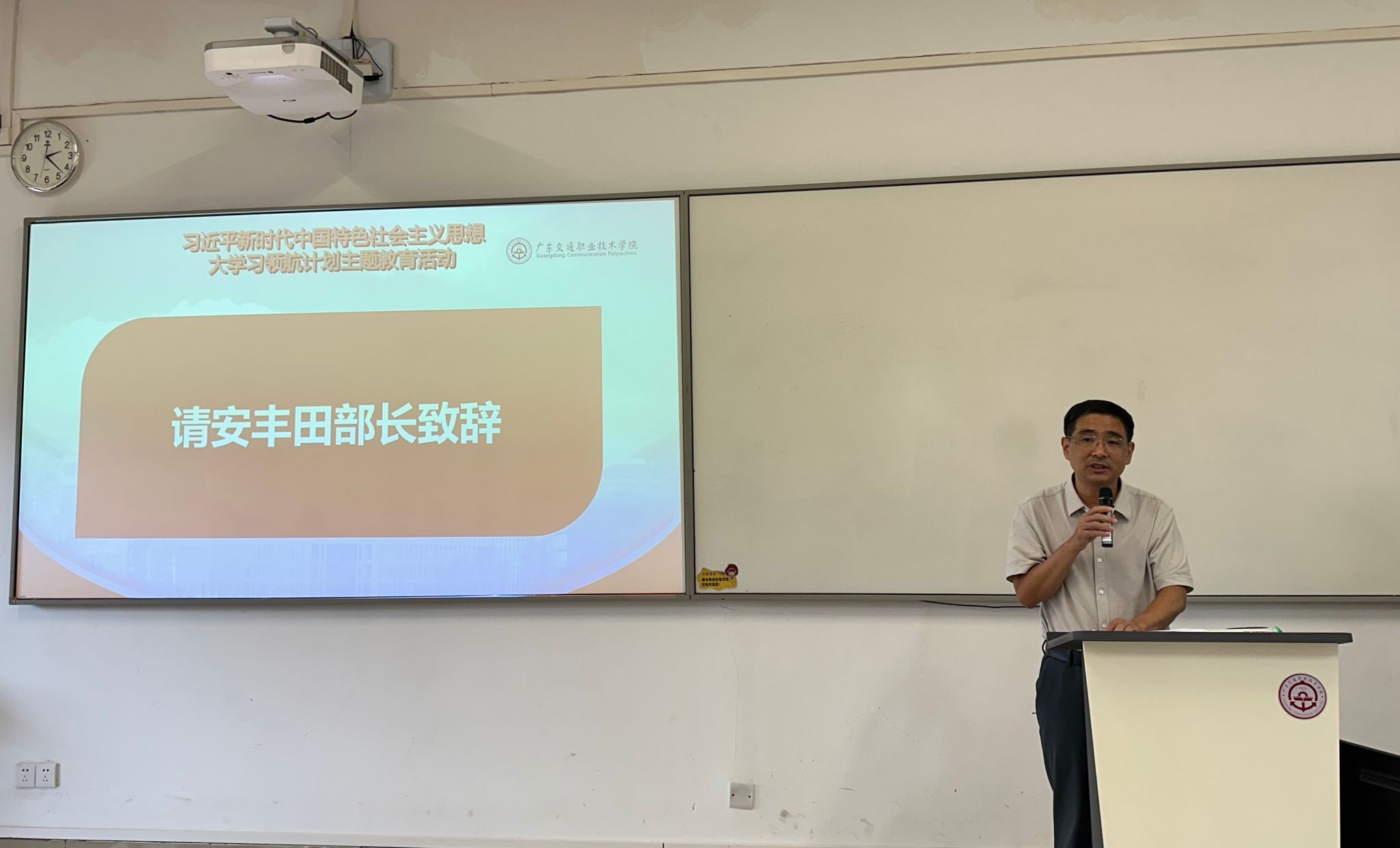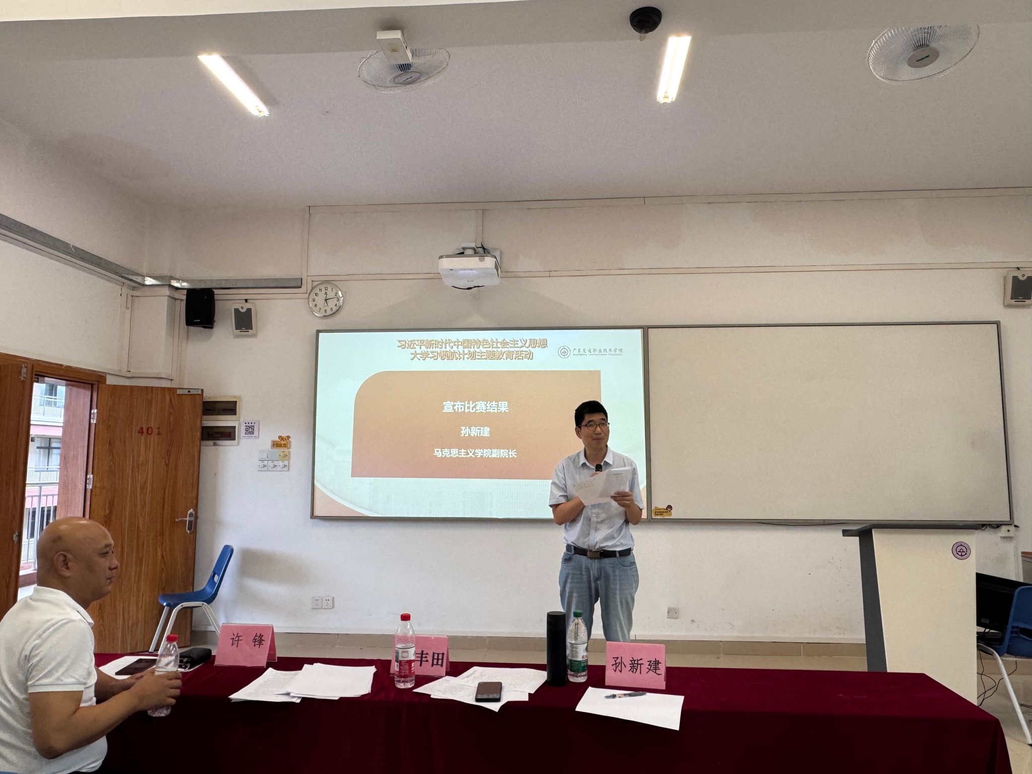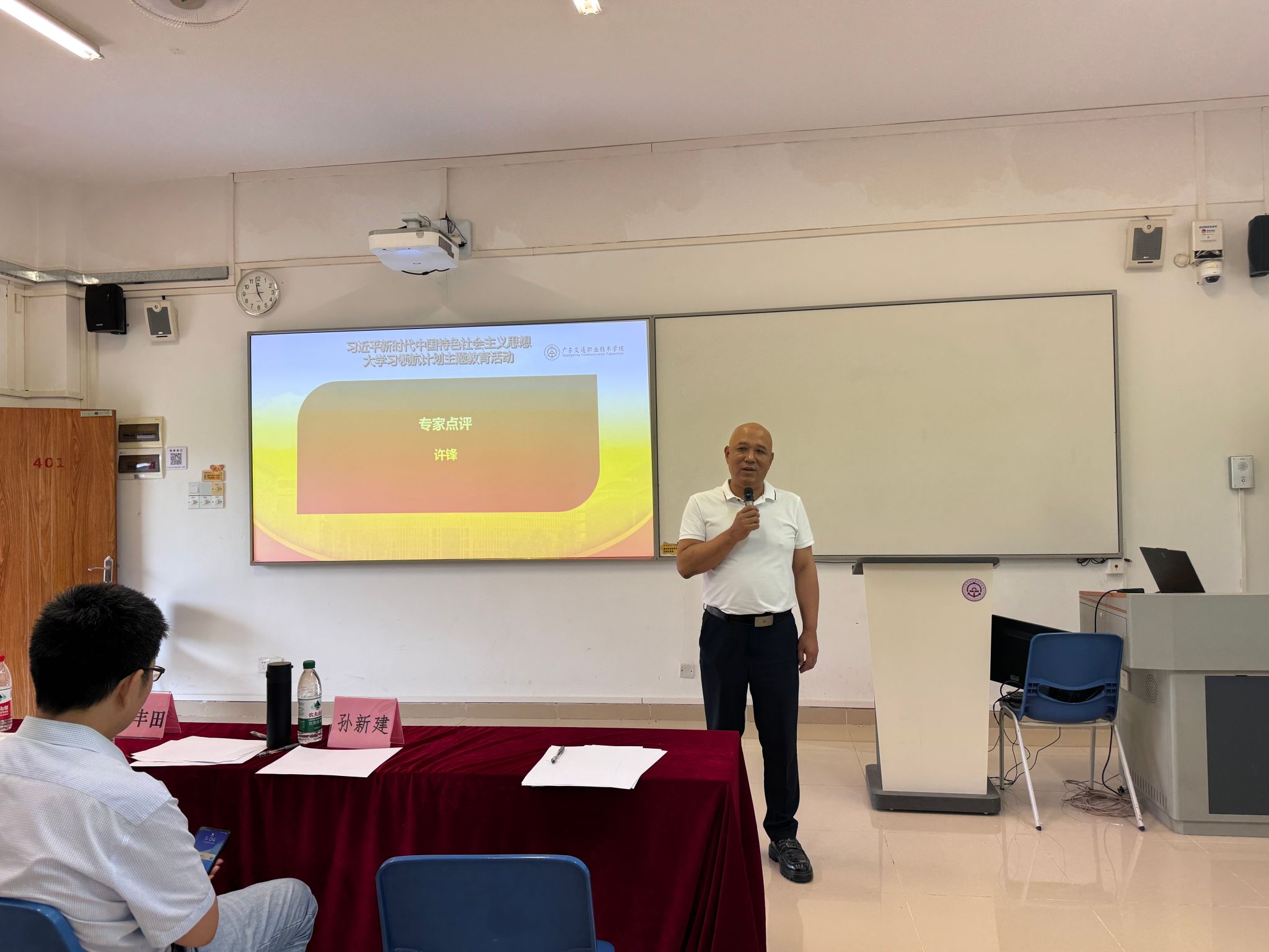 为坚持不懈用习近平新时代中国特色社会主义思想铸魂育人,充分发挥“大思政课”实践教学基地育人作用,推动思政小课堂与社会大课堂相结合,推动“大思政课”建设走深走实。6月19日下午,学院2025年习近平新时代中国特色社会主义思想大学习领航计划系列主题活动竞赛校级决赛在清远校区求是楼401举办。中国作家协会会员、国家一级作家、广东省报告文学学会副会长,广东财贸职业学院许锋教授应邀莅临指导。马克思主义学院党总支书记安丰田,院长周志平,副院长孙新建及多位教师代表出席活动。