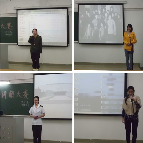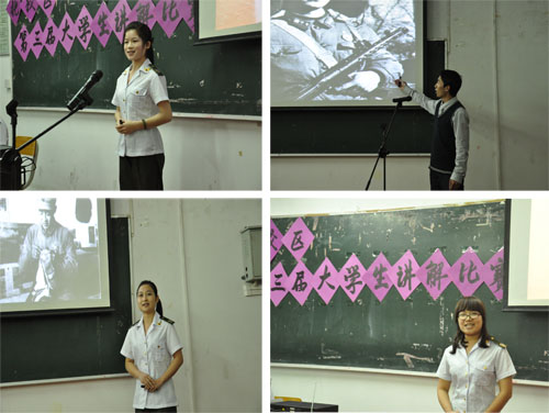 为纪念学习雷锋50周年,进一步传承雷锋精神,思政部于3月21日晚在北校区举行了主题为“追寻雷锋足迹,颂唱时代赞歌”的(北校区)第三届大学生讲解大赛决赛。洪秀全故居专职讲解员骆凤仪女士、基础部潘立守副主任、思政部刘树良老师和魏航老师担任大赛的评委。