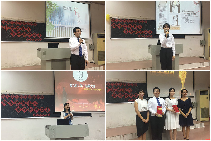 经过初赛、复赛的层层选拔,脱颖而出的12名选手于6月6日相聚花都校区讲解大赛决赛现场,进行最后的激烈角逐。12名选手借助实物、多媒体等多种手段,用幽默、睿智、生动的语言讲解了与马克思有关的经典故事:有的选手讲解马克思与燕妮的爱情故事,有的选手讲解马克思和恩格思的友情,有的选手讲解马克思的毕业季。